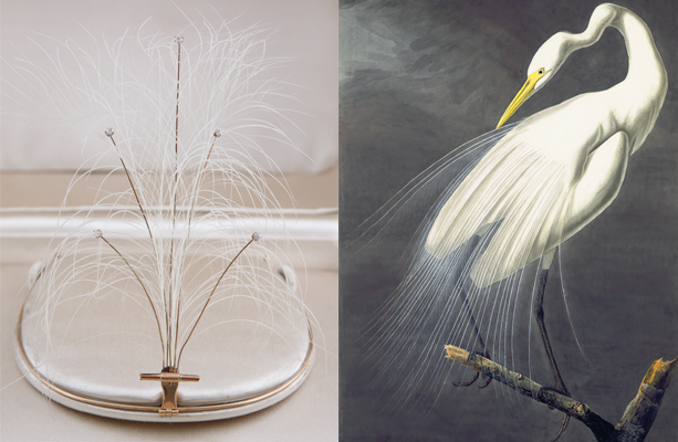 - New York City was once an epicenter of the feather trade. Aigrettes—wispy egret plumes—were donned by fashionable dames around the turn of the 20th century. The elegant, yellow-slippered Snowy Egrets you can now see in many of our city’s marshes were hunted almost to extinction to supply Manhattan’s modistes. According to a New-York Historical Society curator, figures suggest that in 1902, 1.5 tons of egret feathers made their way to market, representing “200,000 birds and three times that many eggs” lost to hunters. The Audubon Society has its origins in the backlash against this slaughter and conservationists of the time promoted feather-free hats dubbed “Audubonnets.”